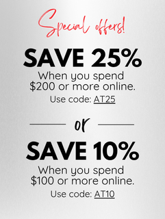 Offer 1 - Save 25% on all online orders over $200. Use code AT25
